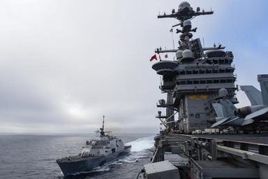 | Keywords: USS John C. Stennis operations 150428-N-GZ947-028.jpg en 150428-N-GZ947-028 PACIFIC OCEAN - USS Freedom comes alongside USS John C Stennis during a group sail exercise U S Navy ships are underway conducting an Independent Deployer Certification Exercise off the coast of Southern California The exercise provides a multi-ship environment to train and certify independent deployers in surface warfare air defense maritime-interception operations command and control/information warfare command control computers and combat systems intelligence and mine warfare 2015-04-28 April 28 2015 https //www dvidshub net/image/1906946 150428-N-GZ947-028 2015-04-30 14 30 USS JOHN C STENNIS PACIFIC OCEAN PD-USGov-Military-Navy USS John C Stennis CVN-74 Images from DoD uploaded by Fæ |