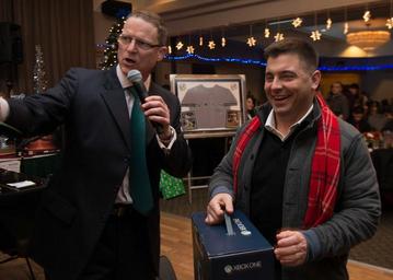 | Keywords: USS John C. Stennis (CVN 74) operations 151210-N-DA737-034.jpg en 151210-N-DA737-034 SILVERDALE Wash Dec 10 2015 - Lt Cmdr Michael Gala from Ridgewood N J wins a prize during a raffle after his number is called out by Capt Mike Wettlaufer commanding officer of the USS John C Stennis CVN 74 during a command holiday party Stennis' crew is currently in port training for future deployments U S Navy photo by Mass Communication Specialist 3rd Class Jonathan Jiang / Released <br>Unit USS John C Stennis CVN 74 2015-12-10 Petty Officer 3rd Class Jonathan Jiang https //www dvidshub net/image/2327952/uss-john-c-stennis-cvn-74-operations 151210-N-DA737-034 2015-12-11 11 43 BREMERTON WA US PD-USGov-Military-Navy USS John C Stennis CVN-74 Images from DoD uploaded by Fæ |