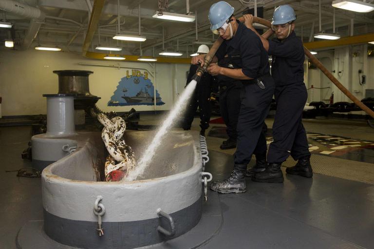 | Keywords: USS Kearsarge operations 151008-N-KW492-090.jpg en 151008-N-KW492-090 ATLANTIC OCEAN Oct 8 2015 Seaman Malachi Barnes and Boatswain's Mate Seaman Reynaldo Maldonado wash the anchor chain aboard the amphibious assault ship USS Kearsarge LHD 3 Kearsarge is deployed as part of the Kearsarge Amphibious Ready Group to the U S 5th and 6th Fleet area of operations as part of a regularly scheduled deployment U S Navy photo by Mass Communication Specialist Seaman Apprentice Ryre Arciaga/Released <br>Unit Navy Media Content Services 2015-10-08 Ryre Arciaga https //www dvidshub net/image/2226100/uss-kearsarge-operations 151008-N-KW492-090 2015-10-11 01 08 USS KEARSARGE ATLANTIC OCEAN PD-USGov-Military-Navy USS Kearsarge LHD-3 Images from DoD uploaded by Fæ |