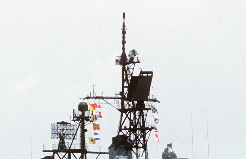 | Keywords: USS MacDonough (DDG-39) radar.jpg Radar arangement of the U S Navy guided missile destroyer USS MacDonough DDG-39 in 1984 left to right SPS-37 TACAN URN-20 SPS-10 SPS-48 Mk 68 gun director with SPG-53 radar http //www defenseimagery mil U S DefenseImagery photo VIRIN http //www dodmedia osd mil/DVIC_View/Still_Details cfm SDAN DNST9001195 JPGPath /Assets/1990/Navy/DN-ST-90-01195 JPG DN-ST-90-01195 cropped 1984-06-14 PH2 Paul Erickson USN complete image at Image USS MacDonough DDG-39 1984 jpg PD-USGov-Military-Navy USS Macdonough DDG-39 Ship radars of the United States Navy AN/SPS-37 AN/SPS-48 |