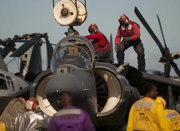 | Keywords: USS Makin Island action 120615-N-PB383-198.jpg en U S sailors attach a hook to an AV-8B Harrier II aircraft while performing a crash and salvage drill for friends and family on the flight deck aboard the amphibious assault ship USS Makin Island LHD 8 under way in the Pacific Ocean June 15 2012 Makin Island and the embarked U S Marines assigned to the 11th Marine Expeditionary Unit are conducting a tiger cruise designed to show family members and friends what sailors and Marines do on a daily basis aboard a ship U S Navy photo by Mass Communication Specialist 2nd Class Dominique Pineiro/Released 2012-06-15 Seaman Dominique Pineiro https //www dvidshub net/image/665981 120615-N-PB383-198 2012-09-17 05 22 PACIFIC OCEAN AT SEA PD-USGov-Military-Navy AV-8B Harrier II US Marine Corps USS Makin Island LHD-8 11th Marine Expeditionary Unit Images from DoD uploaded by Fæ |