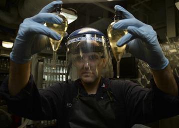 | Keywords: USS Makin Island activity 150113-N-GT710-071.jpg en Gas Turbine System Technician Mechanical 2nd Class Jon McKissack from Yucaipa Calif examines a fuel sample for bottom sediment and water in the oil lab aboard amphibious assault ship USS Makin Island LHD 8 Makin Island the flagship of the Makin Island Amphibious Ready Group is deployed with the 11th Marine Expeditionary Unit to promote peace and freedom of the seas by providing security and stability in the 7th Fleet area of responsibility U S Navy photo by Mass Communication Specialist 2nd Class Lawrence Davis/Released 2015-01-13 Petty Officer 3rd Class Lawrence James Davis III https //www dvidshub net/image/1743431 150113-N-GT710-071 2015-01-30 06 56 INDIAN OCEAN AT SEA PD-USGov-Military-Navy USS Makin Island LHD-8 11th Marine Expeditionary Unit Images from DoD uploaded by Fæ |