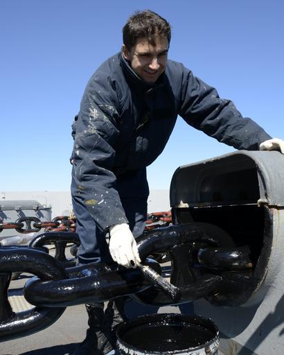 | Keywords: USS Mesa Verde operations 140222-N-HB951-085.jpg en U S Navy Seaman David Santillanes paints the anchor chain aboard the amphibious transport dock ship USS Mesa Verde LPD 19 in the Atlantic Ocean Feb 22 2014 The Mesa Verde and Marines with the 22nd Marine Expeditionary Unit deployed with the Bataan Amphibious Readiness Group to the U S 5th Fleet and 6th Fleet areas of responsibility U S Navy photo by Seaman Phylicia A Hanson/Released 2014-02-22 Seaman Phylicia Hanson https //www dvidshub net/image/1175578 140222-N-HB951-085 2014-02-27 10 00 USS MESA VERDE LPD 19 AT SEA PD-USGov-Military-Navy 22nd Marine Expeditionary Unit USS Mesa Verde LPD-19 Images from DoD uploaded by Fæ |