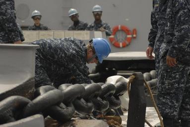 | Keywords: USS Mesa Verde pulls into Bahrain DVIDS275367.jpg en Sailors aboard the amphibious transport dock ship USS Mesa Verde secure the anchor chain after a brief stop before arriving pier side in Bahrain for a port visit Mesa Verde is part of the Nassau Amphibious Ready Group supporting maritime security operations and theater security cooperation operations in the U S 5th Fleet area of responsibility 2010-04-26 U S Navy photo by Petty Officer 1st Class Steve Smith https //www dvidshub net/image/275367 100426-N-+++++-014 2010-05-03 16 44 MANAMA BH PD-USGov-Military-Navy Manama USS Mesa Verde LPD-19 Images from DoD uploaded by Fæ |