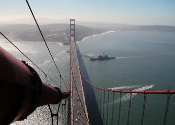 | Keywords: US Navy 031011-N-8208G-001 USS Mobile Bay (CG 53) arrives in San Francisco for the Parade of Ships during San Francisco Fleet Week.jpg en San Francisco Calif Oct 11 2003 -- USS Mobile Bay CG 53 arrives in San Francisco for the Parade of Ships during San Francisco Fleet Week This marks the 22nd year of Navy participation The celebration is held at the Fisherman s Wharf featuring 2 500 Sailors Navy Blue Angels and U S Navy ships; USS Cleveland LPD 7 USS Hopper DDG 70 USS Thach FFG 43 USS Shiloh CG 67 USS Mobile Bay CG 53 U S Navy photo by Aviation Electronics Technician Airman Sandra Gomes RELEASED 2003-10-11 031011-N-8208G-001 Navy http //www navy mil/view_image asp id 10000 U S Navy photo by Aviation Electronics Technician Airman Sandra Gomes PD-USGov-Military-Navy USS Mobile Bay CG-53 Golden Gate Bridge Fleet Week San Francisco 2003 |