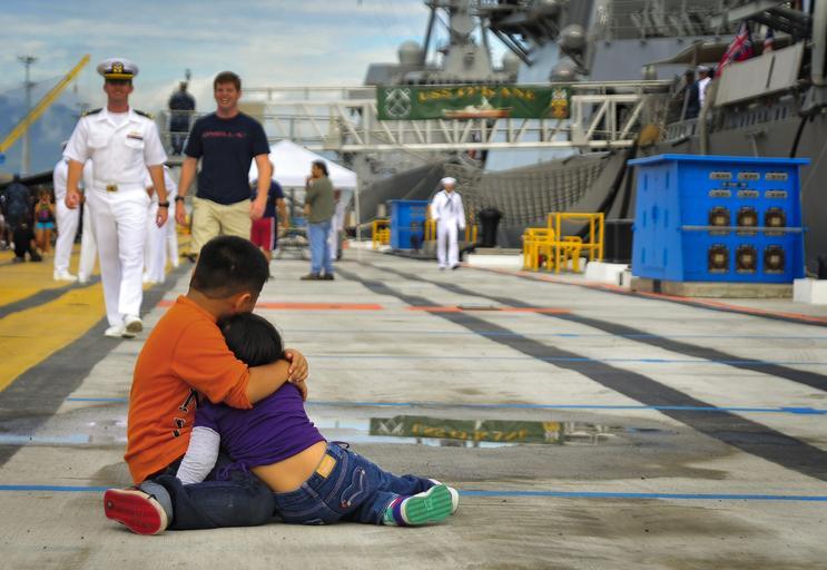 | Keywords: USS O'Kane 140307-N-WF272-002.jpg en Children of a sailor assigned to the guided missile destroyer USS O'Kane DDG 77 comfort each other as the ship departs Joint Base Pearl Harbor-Hickam Hawaii March 7 2014 for a deployment to the Arabian Gulf U S Navy photo by Mass Communication Specialist 3rd Class Diana Quinlan/Released 2014-03-07 Petty Officer 3rd Class Diana Quinlan https //www dvidshub net/image/1185525 140307-N-WF272-002 2014-03-13 08 02 JOINT BASE PEARL HARBOR-HICKAM VA US PD-USGov-Military-Navy 2014 in Pearl Harbor Aboard USS O'Kane DDG-77 USS O'Kane DDG-77 at Pearl Harbor USS O'Kane DDG-77 Images from DoD uploaded by Fæ |