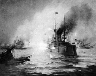 | Keywords: USS Olympia art NH 902596.jpg Battle of Manila Bay 1 May 1898 Depicts USS Olympia in center Removed caption read Photo USN 902596 Battle of Manila Bay by Johnson U S Naval Historical Center Photograph Photo NH 902596 Print after a painting by Marshall Johnson Source http //www history navy mil/photos/events/spanam/events/man-bay2 htm License All information on this site is in the public domain and may be distributed or copied unless otherwise specified Use of appropriate byline/photo/image credits is requested - http //www history navy mil/warning htm PD-art Battle of Manila Bay 1898 Naval ships of the United States in the 1890s Artworks missing infobox template |