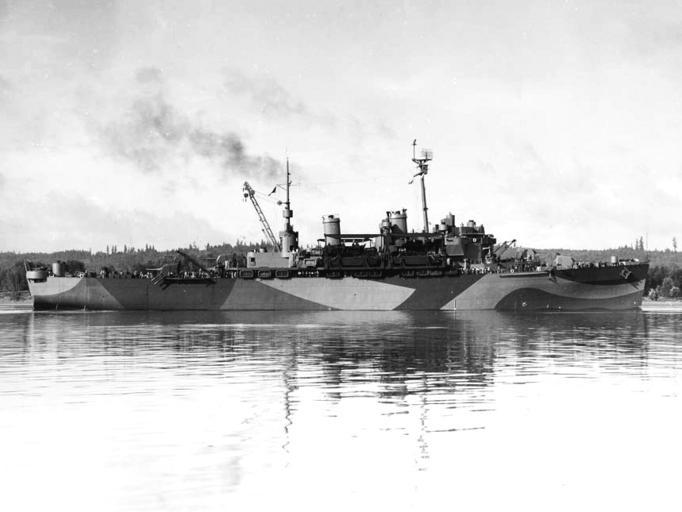 | Keywords: USS Ozark (LSV-2) on 16 September 1944.jpg The U S Navy vehicle landing ship USS Ozark LSV-2 underway near her builders yard Willamette Iron Steel Corporation Portland Oregon USA on 16 September 1944 Her two superfiring 127 mm/38 gun mounts were removed before she left the shipyard in early October Ozark is painted in Camouflage Measure 31 Design 15L U S Navy photo http //www navsource org/archives/10/17/10170204 jpg 19-N-76631 from http //www navsource org/archives/10/17/1702 htm Navsource org 1944-09-16 U S Navy Bureau of Ships PD-USGov-Military-Navy USS Ozark LSV-2 Camouflage Measure 31 |