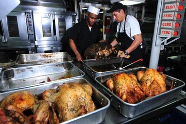 | Keywords: USS Pearl Harbor DVIDS343500.jpg en Cpl Omar Forrester and Seaman Jesse Rodriguez a culinary specialist prepare turkeys for Thanksgiving dinner aboard the amphibious dock landing ship USS Pearl Harbor LSD 52 Pearl Harbor is part of the Peleliu Amphibious Ready Group which is transiting the 7th Fleet area of responsibility 2010-11-25 Petty Officer 2nd Class Michael Russell https //www dvidshub net/image/343500 101125-N-+++++-157 2010-11-25 22 44 ABOARD USS PEARL HARBOR AT SEA PD-USGov-Military-Navy USS Pearl Harbor LSD-52 Images from DoD uploaded by Fæ |