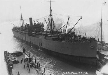 | Keywords: USS Philippines (ID-1677).jpg en The troop transport USS Philippines ID-1677 in port with the 803rd Pioneer Battalion aboard The source states the ship is from Brest France but does not identify the port in which the photo was taken http //www loc gov/pictures/item/2010651621/ Photo LC-DIG-ppmsca-11460 Library of Congress Prints and Photographs Online Catalogue U S Navy 1919 PD-USGov-Military-Navy Transports of the United States Navy | ||||