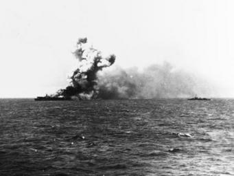 | Keywords: USS Princeton (CVL-23) 1944 10 24.jpg en Smoke rises after a massive explosion in the hangar deck of the U S Navy light aircraft carrier USS Princeton CVL-23 shortly after she was hit by a Japanese bomb while operating off the Philippines on 24 October 1944 A destroyer is visible at right 1944-10-24 Official U S Navy photo http //www history navy mil/our-collections/photography/numerical-list-of-images/nara-series/80-g/80-G-270000/80-G-270546 html 80-G-270546 from the U S Navy http //www history navy mil Naval History and Heritage Command U S Navy PD-USGov-Military-Navy USS Princeton CVL-23 Battle of the Sibuyan Sea Black and white photographs in the 1940s Black and white photographs of ships 1944-10-24 Burning ships |
