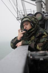 | Keywords: USS Ronald Reagan action DVIDS183630.jpg en Seaman Mary Lemme operations specialist from Bakersfield Calif stands watch on a weather deck in the rain aboard the aircraft carrier USS Ronald Reagan as the ship pulls into Singapore Operations Specialist are responsible for operating radar navigation communications equipment and detecting and tracking ships planes and missiles Ronald Reagan is moored pier-side in Singapore for a scheduled port visit 2009-06-24 Petty Officer 3rd Class Chelsea Kennedy https //www dvidshub net/image/183630 090624-N-+++++-239 2009-06-29 05 48 USS RONALD REAGAN AT SEA PD-USGov-Military-Navy USS Ronald Reagan CVN-76 Images from DoD uploaded by Fæ |