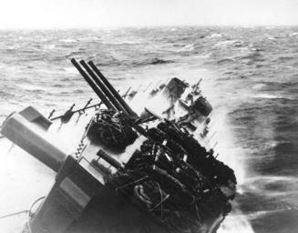 | Keywords: USS Santa Fe (CL-60) during Typhoon Cobra, December 1944.jpg USS Santa Fe CL-60 rolling about 35 degrees to starboard as she rides out a typhoon encountered in the South China Sea probably on 18-19 December 1944 Note that her forward 6 47 gun turret is trained to one side to avoid shipping water through its gun ports The photograph was released for publication on 26 July 1945 http //www history navy mil/photos/images/g700000/g700024 jpg Naval Historical Center cropped 1944-12 All information on this site is in the public domain and may be distributed or copied unless otherwise specified Use of appropriate byline/photo/image credits is requested PD-USGov-Military-Navy USS Santa Fe CL-60 Typhoon Cobra 1944 Ships in heavy seas |