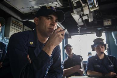 | Keywords: USS Shiloh operations 140715-N-TU910-057.jpg en Chief Quartermaster Sam Patel from Los Angeles makes an announcement over the announcement system during a sea and anchor evolution aboard Ticonderoga-class guided-missile cruiser USS Shiloh CG 67 as the ship departs Busan after a 4-day port visit Shiloh is on patrol with the George Washington Carrier Strike Group supporting of security and stability in the Indo-Asia-Pacific region U S Navy photo by Mass Communication Specialist Seaman Abby Rader/Released 2014-07-15 Seaman Abigail Rader https //www dvidshub net/image/1454325 140715-N-TU910-057 2014-07-19 01 31 BUSAN KR PD-USGov-Military-Navy USS Shiloh CG-67 Images from DoD uploaded by Fæ |