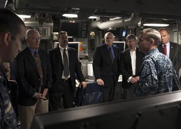 | Keywords: USS Somerset NDIA-SLAAD tour 150429-N-CC789-095.jpg en SAN DIEGO April 29 2015 - Capt Leonard Reed right commanding officer of the amphibious transport dock ship USS Somerset LPD 25 explains ship ™s operations capability from command information center CIC with members of the National Defense Industries Association Strike Land Attack and Air Defense Division NDIA/SLAAD during a distinguished visitors tour Somerset is currently undergoing a post-shakedown availability PSA period The ninth San Antonio-class amphibious transport dock ship Somerset is named in honor of the crew and passengers of United Airlines Flight 93 which crashed near Shanksville Pa in Somerset County during the Sept 11 2001 terrorist attacks U S Navy photo by Mass Communication Specialist 1st Class Vladimir Ramos/Released 2015-04-29 Petty Officer 1st Class VLADIMIR RAMOS https //www dvidshub net/image/1906671 150429-N-CC789-095 2015-04-30 12 45 SAN DIEGO CA US PD-USGov-Military-Navy USS Somerset LPD-25 Images from DoD uploaded by Fæ |