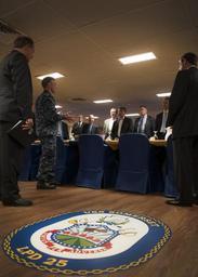 | Keywords: USS Somerset NDIA-SLAAD tour 150429-N-CC789-128.jpg en SAN DIEGO April 29 2015 - Capt Leonard Reed commanding officer of the amphibious transport dock ship USS Somerset LPD 25 explains ship ™s capability with members of the National Defense Industries Association Strike Land Attack and Air Defense Division NDIA/SLAAD during a distinguished visitors tour Somerset is currently undergoing a post-shakedown availability PSA period The ninth San Antonio-class amphibious transport dock ship Somerset is named in honor of the crew and passengers of United Airlines Flight 93 which crashed near Shanksville Pa in Somerset County during the Sept 11 2001 terrorist attacks U S Navy photo by Mass Communication Specialist 1st Class Vladimir Ramos/Released 2015-04-29 Petty Officer 1st Class VLADIMIR RAMOS https //www dvidshub net/image/1906674 150429-N-CC789-128 2015-04-30 12 45 SAN DIEGO CA US PD-USGov-Military-Navy USS Somerset LPD-25 Images from DoD uploaded by Fæ |