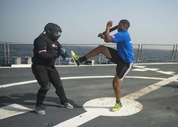 | Keywords: USS STOUT (DDG 55) DEPLOYMENT 2016 161003-N-GP524-508.jpg en 161003-N-GP524-508 ARABIAN GULF Oct 3 2016 Ensign Carlos Ramos right conducts defensive fighting techniques after being sprayed with oleoresin capsicum during a security reaction forces-basic training evolution aboard the guided-missile destroyer USS Stout DDG 55 Stout deployed as part of the Eisenhower Carrier Strike Group is supporting maritime security operations and theater security cooperation efforts in the U S 5th Fleet area of operations U S Navy photo by Petty Officer 3rd Class Bill Dodge Unit Navy Media Content Services DVIDS Tags SAR; Search and Rescue; formation; ocean; transit; Bahrain; RAS; USNS Pecos ; GQ; general quarters; Arleigh Burke-class; America; underway; CIWS; 6th Fleet; guided-missile destroyer; Manama ; forward deployed; Memorial Day; USS Stout DDG 55 ; ship; SUEZ CANAL; Navy; COMREL; Sailor; community relations; destroyer; replenishment-at-sea; U S Navy; 5th Fleet; deployment; MC; Stout; USS Stout; DDG 55; Lt Michael Murphy; NMCS; DVIDS Bulk Import; Mass Communication Specialist 3rd Class Bill Dodge; MC3 Bill Dodge; Murph Challenge; ARGONAUT 2016; Sailors giving back 2016-10-03 Petty Officer 3rd Class William Dodge https //www dvidshub net/image/2903953/uss-stout-ddg-55-deployment-2016 161003-N-GP524-508 2016-10-07 00 11 PERSIAN GULF PD-USGov-Military-Navy Manama Pepper sprays USS Stout DDG-55 Images from DoD uploaded by Fæ |