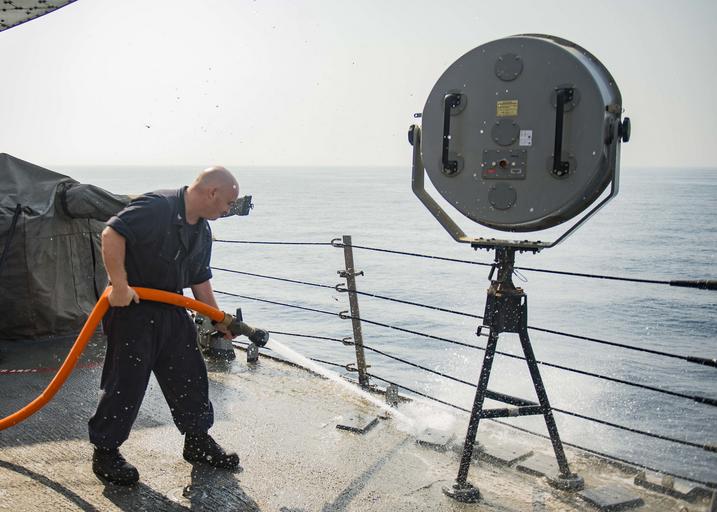 | Keywords: USS STOUT (DDG 55) DEPLOYMENT 2016 160824-N-GP524-621.jpg en 160824-N-GP524-621 ARABIAN GULF Aug 24 2016 Machinery Repairman 2nd Class Michael Christensen from New Hartford N Y sprays the deck of the guided-missile destroyer USS Stout DDG 55 during a freshwater wash down Stout deployed as part of the Eisenhower Carrier Strike Group is supporting maritime security operations and theater security cooperation efforts in the U S 5th Fleet area of operations U S Navy photo by Mass Communication Specialist 3rd Class Bill Dodge Unit Navy Media Content Services DVIDS Tags SAR; Search and Rescue; formation; ocean; transit; Bahrain; RAS; USNS Pecos ; GQ; general quarters; Arleigh Burke-class; America; underway; CIWS; 6th Fleet; guided-missile destroyer; Manama ; forward deployed; Memorial Day; USS Stout DDG 55 ; ship; SUEZ CANAL; Navy; COMREL; Sailor; community relations; destroyer; replenishment-at-sea; U S Navy; 5th Fleet; deployment; MC; Stout; USS Stout; DDG 55; Lt Michael Murphy; NMCS; DVIDS Bulk Import; Mass Communication Specialist 3rd Class Bill Dodge; MC3 Bill Dodge; Murph Challenge; ARGONAUT 2016; Sailors giving back 2016-08-24 Petty Officer 3rd Class William Dodge https //www dvidshub net/image/2822125/uss-stout-ddg-55-deployment-2016 160824-N-GP524-621 2016-08-27 00 09 PERSIAN GULF PD-USGov-Military-Navy Manama USS Stout DDG-55 Images from DoD uploaded by Fæ |