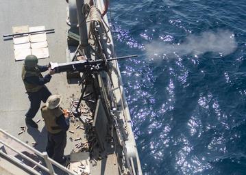 | Keywords: USS STOUT (DDG 55) LIVE-FIRE EXERCISE DEPLOYMENT 2016 160811-N-GP524-344.jpg en 160811-N-GP524-344 ARABIAN GULF Aug 11 2016 Sonar Technician Surface 2nd Class Dimetrius Romero fires a 50-caliber machine gun from aboard the guided-missile destroyer USS Stout DDG 55 during a live-fire exercise Stout deployed as part of the Eisenhower Carrier Strike Group is supporting maritime security operations and theater security cooperation efforts in the U S 5th Fleet area of operations U S Navy photo by Mass Communication Specialist 3rd Class Bill Dodge/Released Unit Navy Media Content Services DVIDS Tags SAR; Search and Rescue; formation; ocean; transit; Bahrain; RAS; USNS Pecos ; GQ; general quarters; Arleigh Burke-class; America; underway; CIWS; 6th Fleet; guided-missile destroyer; Manama ; forward deployed; Memorial Day; USS Stout DDG 55 ; ship; SUEZ CANAL; Navy; COMREL; Sailor; community relations; destroyer; replenishment-at-sea; U S Navy; 5th Fleet; deployment; MC; Stout; USS Stout; DDG 55; Lt Michael Murphy; NMCS; DVIDS Bulk Import; Mass Communication Specialist 3rd Class Bill Dodge; MC3 Bill Dodge; Murph Challenge; ARGONAUT 2016; Sailors giving back 2016-08-11 Petty Officer 3rd Class William Dodge https //www dvidshub net/image/2794362/uss-stout-ddg-55-live-fire-exercise-deployment-2016 160811-N-GP524-344 2016-08-16 00 09 PERSIAN GULF PD-USGov-Military-Navy Manama USS Stout DDG-55 Images from DoD uploaded by Fæ |