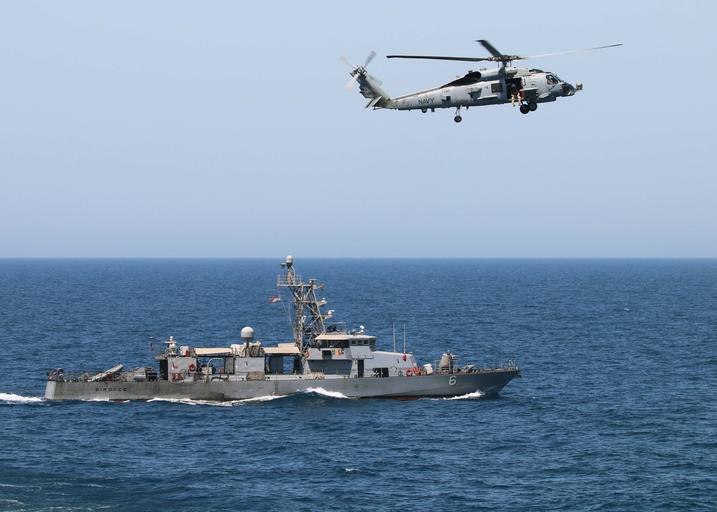 Keywords: USS STOUT (DDG 55) DEPLOYMENT 2016 160811-N-GP524-499.jpg en 160811-N-GP524-499 ARABIAN GULF Aug 11 2016 An MH-60R Sea Hawk helicopter assigned to the Swamp Foxes of Helicopter Sea Maritime Squadron HSM 74 flies over the Cyclone-class coastal patrol ship USS Sirocco PC 6 during an exercise with the guided-missile destroyer USS Stout DDG 55 Stout deployed as part of the Eisenhower Carrier Strike Group is supporting maritime security operations and theater security cooperation efforts in the U S 5th Fleet area of operations U S Navy photo by Mass Communication Specialist 3rd Class Bill Dodge/Released Unit Navy Media Content Services DVIDS Tags SAR; Search and Rescue; formation; ocean; transit; Bahrain; RAS; USNS Pecos ; GQ; general quarters; Arleigh Burke-class; America; underway; CIWS; 6th Fleet; guided-missile destroyer; Manama ; forward deployed; Memorial Day; USS Stout DDG 55 ; ship; SUEZ CANAL; Navy; COMREL; Sailor; community relations; destroyer; replenishment-at-sea; U S Navy; 5th Fleet; deployment; MC; Stout; USS Stout; DDG 55; Lt Michael Murphy; NMCS; DVIDS Bulk Import; Mass Communication Specialist 3rd Class Bill Dodge; MC3 Bill Dodge; Murph Challenge; ARGONAUT 2016; Sailors giving back 2015-08-11 Petty Officer 3rd Class William Dodge https //www dvidshub net/image/2797686/uss-stout-ddg-55-deployment-2016 160811-N-GP524-499 2016-08-17 00 12 AR PD-USGov-Military-Navy Manama USS Stout DDG-55 Images from DoD uploaded by Fæ |