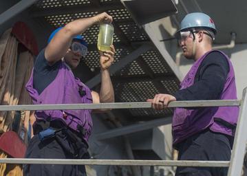 | Keywords: USS STOUT (DDG 55) DEPLOYMENT 2016 160813-N-GP524-260.jpg en 160813-N-GP524-260 ARABIAN GULF Aug 13 2016 Damage Controlman 2nd Class Randal Shaeffer left from Felton Pa and Gas Turbine System Technician 3rd Class Nathan Super from Sarasota Fla inspect a fuel sample aboard the guided-missile destroyer USS Stout DDG 55 during a replenishment-at-sea Stout deployed as part of the Eisenhower Carrier Strike Group is supporting maritime security operations and theater security cooperation efforts in the U S 5th Fleet area of operations U S Navy photo by Mass Communication Specialist 3rd Class Bill Dodge Unit Navy Media Content Services DVIDS Tags SAR; Search and Rescue; formation; ocean; transit; Bahrain; RAS; GQ; general quarters; Arleigh Burke-class; Iraqi navy; America; underway; CIWS; 6th Fleet; guided-missile destroyer; Manama ; forward deployed; Memorial Day; Bilateral exercise; USS Stout DDG 55 ; ship; SUEZ CANAL; Navy; COMREL; Sailor; community relations; destroyer; replenishment-at-sea; Commander ; U S Navy; 5th Fleet; deployment; MC; Stout; USS Stout; DDG 55; Lt Michael Murphy; Al Basra; Task Force 55; CTF 55; NMCS; DVIDS Bulk Import; Mass Communication Specialist 3rd Class Bill Dodge; MC3 Bill Dodge; Murph Challenge; ARGONAUT 2016; Sailors giving back; OSV 401; Iraqi navy Swift Boat P-311; P-311 2016-08-13 Petty Officer 3rd Class William Dodge https //www dvidshub net/image/2803299/uss-stout-ddg-55-deployment-2016 160813-N-GP524-260 2016-08-19 00 11 PERSIAN GULF PD-USGov-Military-Navy Manama USS Stout DDG-55 Images from DoD uploaded by Fæ |