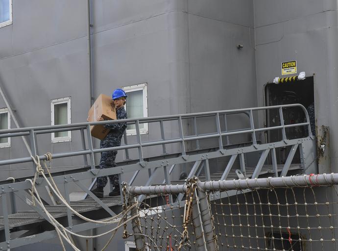 Keywords: USS The Sullivans is prepared for Hurricane Mathew. (30159054376).jpg JACKSONVILLE Fla Oct 5 2016 Petty Officer 3rd class Brittanie Murphy assigned to the guided-missile destroyer USS The Sullivans DDG 68 moves dry storage from a barge to The Sullivans in preparation for Hurricane Mathew U S Navy photo by Seaman Michael Lopez/Released 161005-N-TP832-013 Join the conversation http //www navy mil/viewGallery asp www navy mil/viewGallery asp http //www facebook com/USNavy www facebook com/USNavy http //www twitter com/USNavy www twitter com/USNavy navylive dodlive mil pinterest com plus google com https //www flickr com/photos/usnavy/30159054376/ USS The Sullivans is prepared or Hurricane Mathew 2016-10-05 12 28 https //www flickr com/people/56594044 N06 Official U S Navy Page from United States of America Seaman Michael Lopez/U S Navy Attribution License IPTC Caption-Abstract U S Navy photo PD-USGov-Military-Navy Official U S Navy Imagery https //flickr com/photos/56594044 N06/30159054376 2016-10-10 21 12 15 cc-by-2 0 161005-N-TP832-013 Navy Files from the U S Navy Flickr stream Hurricane Matthew 2016 October 2016 in Florida Photographs taken on 2016-10-05 USS The Sullivans DDG-68 Taken with Nikon D5 |