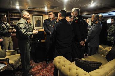 | Keywords: USS Theodore Roosevelt action 150328-N-GR120-010.jpg en 150328-N-GR120-010 ATLANTIC OCEAN Capt Daniel C Grieco commanding officer of Nimitz-class aircraft carrier USS Theodore Roosevelt speaks to military leaders from France Morocco and Portugal March 28 2015 The group visited TR to observe daily shipboard operations as part of the distinguished visitor program to gain a better understanding of carrier operations at sea Theodore Roosevelt deployed from Norfolk and will execute a homeport shift to San Diego at the conclusion of deployment Theodore Roosevelt is conducting naval operations in the U S 6th Fleet area of operations in support of U S national security interests in Europe 2015-03-28 March 28 2015 https //www dvidshub net/image/1847222 150328-N-GR120-010 2015-03-31 00 05 USS THEODORE ROOSEVELT ATLANTIC OCEAN AT SEA PD-USGov-Military-Navy USS Theodore Roosevelt CVN-71 Images from DoD uploaded by FĂŚ |