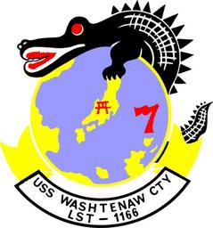 | Keywords: USS Washtenaw County (LST-1166) insignia 1970.png Insignia of the U S Navy tank landing ship USS Washtenaw County LST-1166 This emblem received in 1970 features the following symbols Rough map of the Western Pacific representing the ship's operating area; Japanese tori gateway representing her homeport of Yokosuka Japan; Numeral seven representing the U S Seventh Fleet to which the ship is assigned; and Alligator symbol of the Amphibious Force Official U S Navy photo https //www history navy mil/our-collections/photography/numerical-list-of-images/nhhc-series/nh-series/NH-70000/NH-70141-KN html NH 70141-K from the U S Navy http //www history navy mil Naval History and Heritage Command; post-work Cobatfor 1970 U S Navy PD-USGov-Military-Navy USS Washtenaw County LST-1166 United States Navy landing ships emblems Washtenaw County |