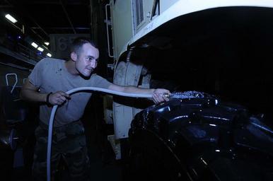 | Keywords: USS WASP activity 110827-N-YY933-069.jpg en Constructionman Lane Adger a steel worker washes salt water off brake on a Medium Tactical Vehicle Replacement to avoid corrosion Aug 27 aboard USS WASP The MTVR is an all-terrain vehicle that hauls fuel water food and supplies to sailors in climate scenarios The amphibious assault ship USS WASP and 27 other Naval Station Norfolk-based ships sortied east into the Atlantic Ocean Aug 25 to avoid any ill-effects of Hurricane Irene 2011-08-27 LHD 1 https //www dvidshub net/image/448883 110827-N-YY933-069 2011-08-28 08 23 ABOARD USS WASP USAFRICOM AT SEA PD-USGov-Military-Navy Naval Station Norfolk Images from DoD uploaded by Fæ |