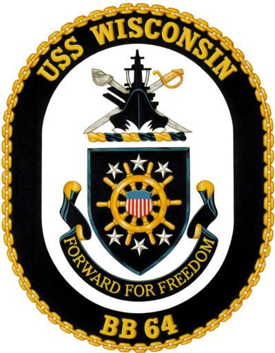 | Keywords: USS Wisconsin COA.png en Emblem of the USS Wisconsin BB-64 2011-05-27 United States Army Institute of Heraldry Member of the Armed Forces of the United States File Wisconsin crest jpg PD-USGov USS WISCONSIN applies the Wisconsin State Motto FORWARD to her mission of preserving freedom and serving the interest of the United States hence FORWARD FOR FREEDOM SHIELD Dark blue and gold are the colors traditionally associated with the United States Navy The ship's wheel represents navigation and leadership and reflects WISCONSIN ™S global capabilities and seaworthiness The smaller shield from the United States Coat of Arms points out our national heritage and also appears on the Wisconsin State Flag During World War II WISCONSIN played a vital part in the attainment of U S Naval power as second to none in the world She earned 5 battle stars for her World War II service and one for Korea This total is represented by the stars around the ship ™s wheel CREST The warship silhouette is a battleship designed to combine the most powerful guns large size and the strongest armor She is capable to dealing and absorbing the most damage The crossed cutlass and sword represents the combat readiness of the enlisted personnel and officers aboard WISCONSIN MOTTO The state ™s motto dates back to the 1850 ™s State officials at that time felt their motto should be descriptive of where the state was headed and where the people should look In an effort to keep their motto clear and understood by all they opted for a less traditional English version since most mottoes were in Latin The progressivism of the state at that time has remained intact throughout the years Uploaded with UploadWizard United States Navy battleships emblems USS Wisconsin BB-64 |