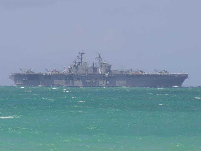 | Keywords: USSBonhommeRichardRIMPAC2008.jpg en USS Bonhomme Richard Amphibious Assault Ship LHD-6 off the coast of Oahu shortly before coming about and launching 4 helicopters Own Kagern 2008-07-27 Taken from a beach on Waimanalo Bay Oahu on the day of her arrival for RIMPAC 2008 Canon EOS Digital Rebel 477mm focal length General views of USS Bonhomme Richard LHD-6 RIMPAC 2008 |
