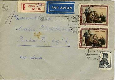 | Keywords: USSRcover1957.jpg USSR cover with two USSR Lenin stamps of 1952 and a definitive USSR stamps and registered letter airmail and international mail postmarks and a calendar postmark sent from Moscow to Praha Конве т СССР с двумя ма ками СССР 1952 г Ходоки у Ленина и станда тной ма кой СССР почтовыми я лыками заказное и авиа и вто ичным штемпелем междуна одного письма и календа ным штемпелем отп авленный из осквы в П агу http //molotok ru/item775626561_konvert_sssr_chehoslovakiya_mezhdunarodnoe html Molotok ru Internet auction 2009-10-23 USSR post PD-RU-exempt stamps Stamps of the Soviet Union 1952 Airmail covers Definitive stamps of the Soviet Union Postal covers of the Soviet Union Vladimir Lenin on stamps Leniniana on postal covers Images from molotok ru |