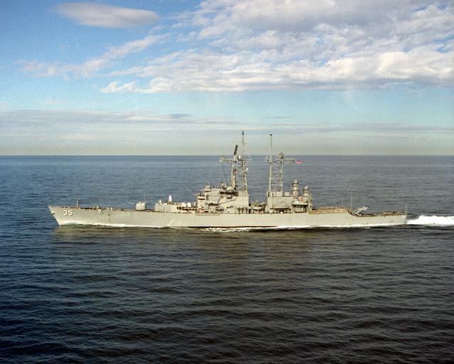 Keywords: USSTruxtunDLGN35.jpg The U S Navy nuclear-powered guided missile cruiser USS Truxtun CGN-35 underway off San Diego in January 1989 6450116 1989-01-03 PH2 Petty U S Navy PD-USGov-Military-Navy USS Truxtun CGN-35