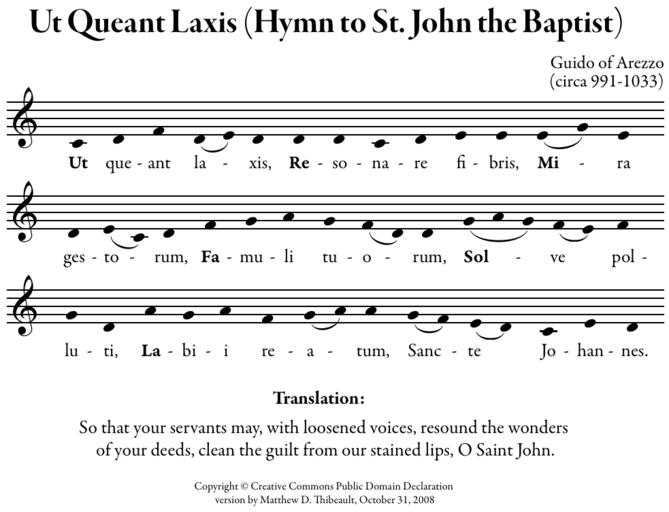 | Keywords: Ut Queant Laxis MT.png Ut queant laxis or Hymnus in Ioannem is a Latin hymn in honour of John the Baptist written in Horatian Sapphics and traditionally attributed to Paulus Diaconus the eighth century Lombard historian Self made by Matthew Thibeault after Guido of Arezzo Public Domain 1000 year old tune PD-old-100 Original upload log en wikipedia Ut+Queant+Laxis+MT png 2008-11-02 02 29 Matthewt73 983×752× 43137 bytes Author Matthew Thibeault Source Public Domain 1000 year old tune Sheet music examples Latin language Saint John the Baptist Hymns Paulus Diaconus Guido of Arezzo Solfege |