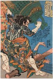 | Keywords: Utagawa Kuniyoshi - 水滸傳 - 杜興 2.jpg en Du Xing 興 stripped to the waist and tattooed lifting a huge temple bell to crush his opponent 1845 1850 http //www britishmuseum org/research/collection_online/collection_object_details aspx objectId 3278081 partId 1 Utagawa Kuniyoshi PD-Art Uploaded with UploadWizard Outlaws of the Water Margin |