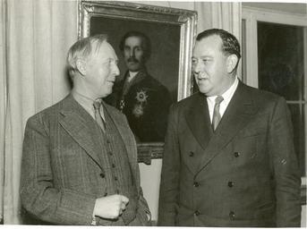 | Keywords: vårslipp 2012 vårslipp2012 trygve lie trygvelie andre verdenskrig andreverdenskrig 2. verdenskrig 2verdenskrig nordmenn i sverige under krigen nordmennisverigeunderkrigen people monochrome Under sitt besøk i Sverige i oktober-november 1944 arrangerte utenriksminister Trygve Lie på Grand Hotel i Stockholm en lunch, hvori deltok medlemmer av den svenske regjering, Norges og allierte nasjoners sendemenn i Sverige, fremstående norske og svenske militære sjefer o.a. Bildet viser utenriksminister Trygve Lie (t.h.) i samtale med den svenske finansminister Ernst Wigforss. Pa-1209, Serie Uc_66 Administrasjonen II Under sitt besøk i Sverige i oktober-november 1944 arrangerte utenriksminister Trygve Lie på Grand Hotel i Stockholm en lunch, hvori deltok medlemmer av den svenske regjering, Norges og allierte nasjoners sendemenn i Sverige, fremstående norske og svenske militære sjefer o.a. Bildet viser utenriksminister Trygve Lie (t.h.) i samtale med den svenske finansminister Ernst Wigforss. Pa-1209, Serie Uc_66 Administrasjonen II |