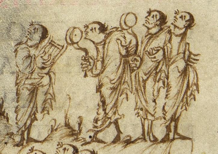 View Original:Utrechts-Psalter PSALM-149-PSALM-150 Psaltery and cymbols.jpg (857x605)