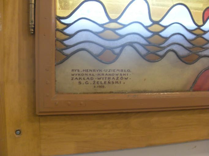 Keywords: Uziemblo3.JPG pl Henryk Uziembło - sygnatura twórcy na witrażu w willi dyrektorów kopalni w Sierszy 1909 r own Miezian 2009 Henryk Uziembło Trzebinia Art Nouveau stained glass windows in Poland 1909 stained glass windows
