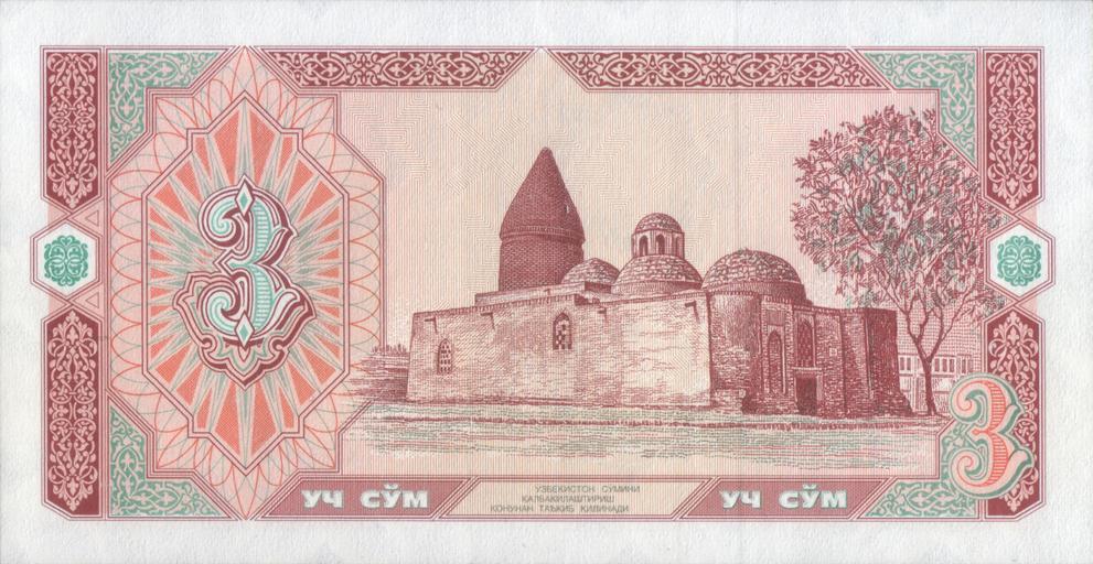 Keywords: UZS3 1994 back.jpg 3 cумa узбекистана 1994 3 soms of Uzbekistan 1994 own scan 1994 Цент альный банк Республики Узбекистан The Central bank of the Republic of Uzbekistan Ўзбекистон Республикаси ма казий банки PD-UZ-exempt banknotes Banknotes of Uzbekistan Chashma-Ayub Mausoleum Banknotes with a face value of 3 Red banknotes 1994 banknotes Buildings on banknotes |