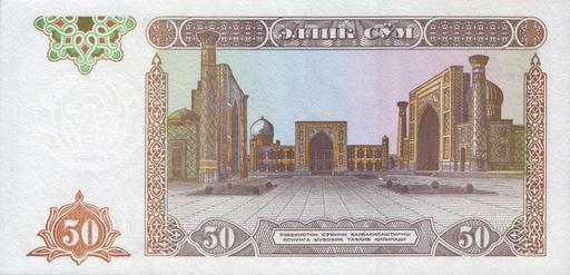 | Keywords: UZS50 1994 back.jpg 50 cум узбекистана 1994 50 soms of Uzbekistan 1994 own scan 1994 Цент альный банк Республики Узбекистан The Central bank of the Republic of Uzbekistan Ўзбекистон Республикаси ма казий банки PD-UZ-exempt banknotes Banknotes of Uzbekistan Samarkand Registan - General views and maps Banknotes with a face value of 50 Brown banknotes 1994 banknotes Buildings on banknotes | ||||
