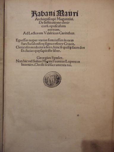 | Keywords: text writing monochrome Rabani Mauri Archiespiscopi Maguntini. De Institutione clericorum. opusculum aureum. Ad lectorem Udalricus Carinthus. Egressus nuper varias sum jussus in oras Sancta salutisere signa referre Crucis. Clericulis modo jura fero. hinc si quisquam sacerdos es. facias quem sapit iste liber. Georgius Symler. Non hic vel Salios Martis Faunive Lupercos Invenies. Christi sed sacramenta tui. [texte imprimé] Auteur principal: Raban Maur (0780-0856?) Auteur Auteur: Simler, Georg (14..-1535) ; Anshelm, Thomas, imprimeur-libraire (1470?-1522?) Imprimeur Langue: latin. Pays: Allemagne, Pforzheim. Édition: Impressum Phorce per Thomam Anshelmi de Baden. IIII. Calen. Octobris. Anno M.D.IIII. Rabani Mauri Archiespiscopi Maguntini. De Institutione clericorum. opusculum aureum. Ad lectorem Udalricus Carinthus. Egressus nuper varias sum jussus in oras Sancta salutisere signa referre Crucis. Clericulis modo jura fero. hinc si quisquam sacerdos es. facias quem sapit iste liber. Georgius Symler. Non hic vel Salios Martis Faunive Lupercos Invenies. Christi sed sacramenta tui. [texte imprimé] Auteur principal: Raban Maur (0780-0856?) Auteur Auteur: Simler, Georg (14..-1535) ; Anshelm, Thomas, imprimeur-libraire (1470?-1522?) Imprimeur Langue: latin. Pays: Allemagne, Pforzheim. Édition: Impressum Phorce per Thomam Anshelmi de Baden. IIII. Calen. Octobris. Anno M.D.IIII. |