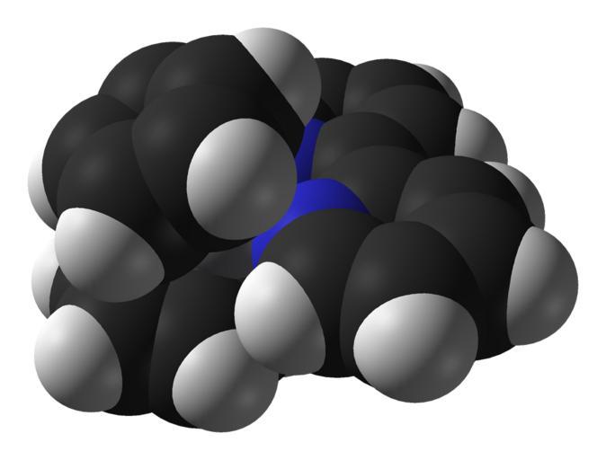 | Keywords: V(eta-3-Cp)(eta-5-Cp)(bipy)-from-xtal-2007-3D-SF.png Space-filling model of the 2 2 ²-bipyridine η<sup>3</sup>-cyclopentadienyl η<sup>5</sup>-cyclopentadienyl vanadium II complex Cp<sub>2</sub>V bipy from the crystal structure Crystal structure by X-ray diffraction from http //dx doi org/10 1002/ejic 200700904 Eur J Inorg Chem 2007 5168-5172 Model constructed in http //www crystalmaker com/ CrystalMaker 8 1 Image generated in http //accelrys com/products/discovery-studio/visualization/discovery-studio-visualizer html Accelrys DS Visualizer own 2009-06-18 Ben Mills Benjah-bmm27 Images by Ben Mills 2 2 ²-Bipyridine η3-cyclopentadienyl η5-cyclopentadienyl vanadium II |