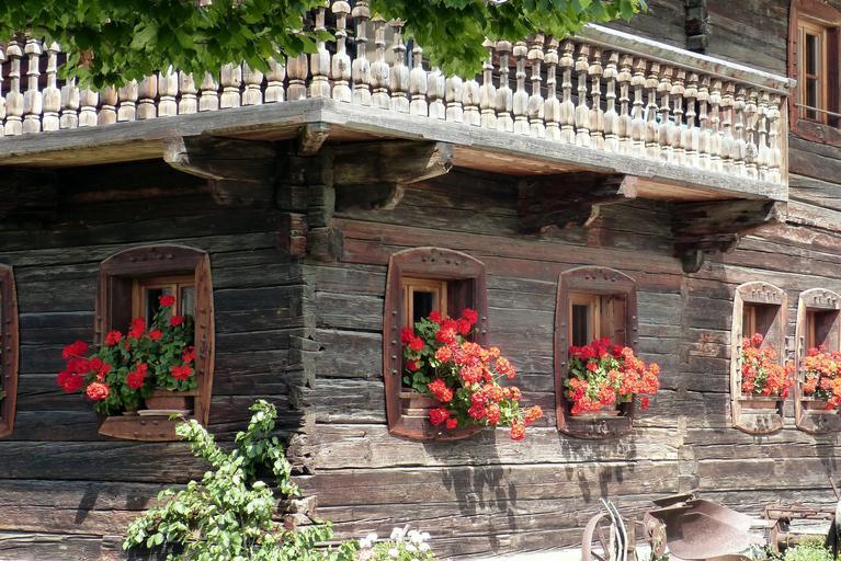 Keywords: vacation block house floral decorations old alpine