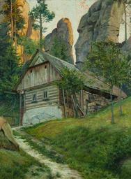 | Keywords: Václav Malý Motiv aus dem Böhmischen Paradies 1903.jpg de Motiv aus dem Böhmischen Paradies rechts unten monogrammiert und datiert VM 1903 Öl/Karton 65 x 49 cm http //www dorotheum com Dorotheum 1903 Creator Václav Malý PD-old-auto-1923 1935 Images from Dorotheum Václav Malý painter 1903 paintings Paintings of barns |