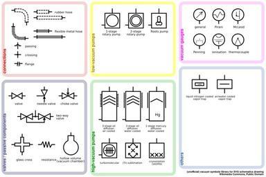 | Keywords: Vacuum symbols library.svg Several symbols of vacuum system components including vacuum pumps valves gauges etc The symbols probably are not standardized in the World Please make sure that they are commonly used in your country's vacuum engineering diagrams before you use them in any serious document екото ые символы компонентов вакуумных систем включая вакуумные насосы клапаны изме ительные п ибо ы и т д Об атите внимание что эти обозначения не общеп изнанные поэтому пе ед их использованием в се ьёзных документах убедитесь что они достаточно ши око используются в вашей ст ане date Own based on Ing Jaroslav KRÁL CSc Cvičení z vakuové techniky Vydavatelství ČVUT Prague 1996 FDominec Vacuum diagrams Symbol charts |
