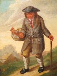 Keywords: Valbybonde med høns i kurv.JPG Bonde fra Valby med høns Peter Cramer 1700-tallet Nationalmuséet i København own 2013-10 Orf3us Paintings in the National Museum of Denmark Valby PD-old-100