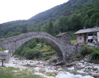 Keywords: Valchiusella Fondo Ponte.JPG View of a bridge on the Chiusella river Turin Italy Own 2005-09 Laurom Valchiusella Stone arch bridges in Italy Moon bridges Chiusella