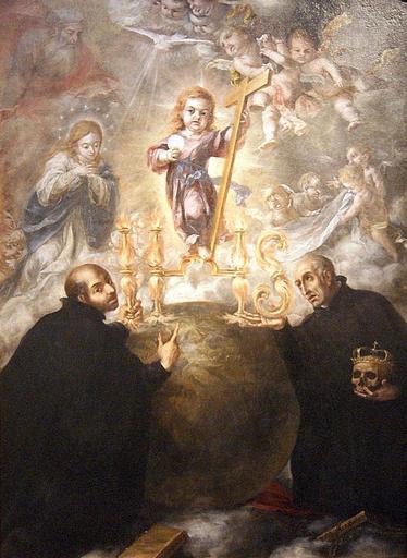 | Keywords: Valdes leal-san ignacio y san francisco de borja.JPG La obra representa a San Ignacio de Loyola el fundador de la Compañía de Jesús y a San Francisco de Borja que llegaría a ser general de dicha Compañía contemplando una alegoría de la Eucaristía 1671 oil on canvas Size cm 160 218 Institution Museo de Bellas Artes Seville http //ceres mcu es/pages/Main accession number CE0190P http //www foroxerbar com/files/images/50/7_sala_viii_10_s_ignacio_y_s_fco_contemplando_la_eucarist_a_vald_s_leal_1674_casa_profesa_c_a_jes_s jpg PD-old-100 Paintings of Saint Ignatius of Loyola in Spain 17th-century paintings of Saint Ignatius of Loyola Francis Borgia in paintings Paintings of Saint Ignatius of Loyola by Juan de Valdés Leal Paintings of Christian saints by Juan de Valdés Leal Paintings by Juan de Valdés Leal in the Fine Arts Museum of Seville 17th-century paintings in the Fine Arts Museum of Seville 1671 paintings in Spain |