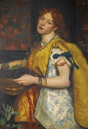 | Keywords: Valentine Cameron Prinsep - A girl carring grapes (1862).jpg Artwork Creator Valentine Cameron Prinsep 1862 oil canvas cm 109 84 accession number object history credit line exhibition history signed with monogram and dated lower left 1862 http //www sothebys com/en/auctions/ecatalogue/2012/british-irish-art/lot 22 html Sotheby's London 17 Dezember 2009 lot 15 PD-old-auto-1923 1904 DEFAULTSORT Prinsep Valentine Cameron; Portrait female girl carring grapes; Sotheby's 2009 Valentine Cameron Prinsep Images from Sotheby's |