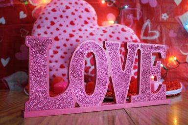 Keywords: valentine valentines day red pink hearts lights festive romance love decor decoration sparkles sign